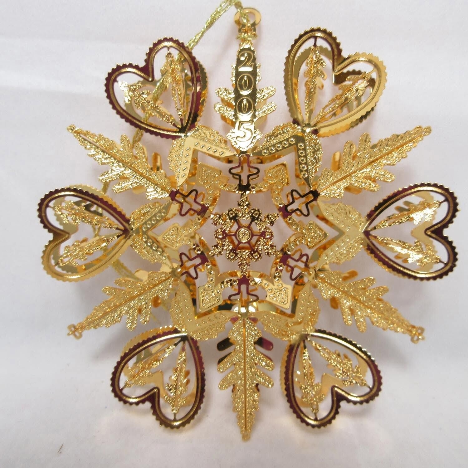 Heart Snowflake 2005 Danbury Mint Gold Plated Christmas Collection Ornament
