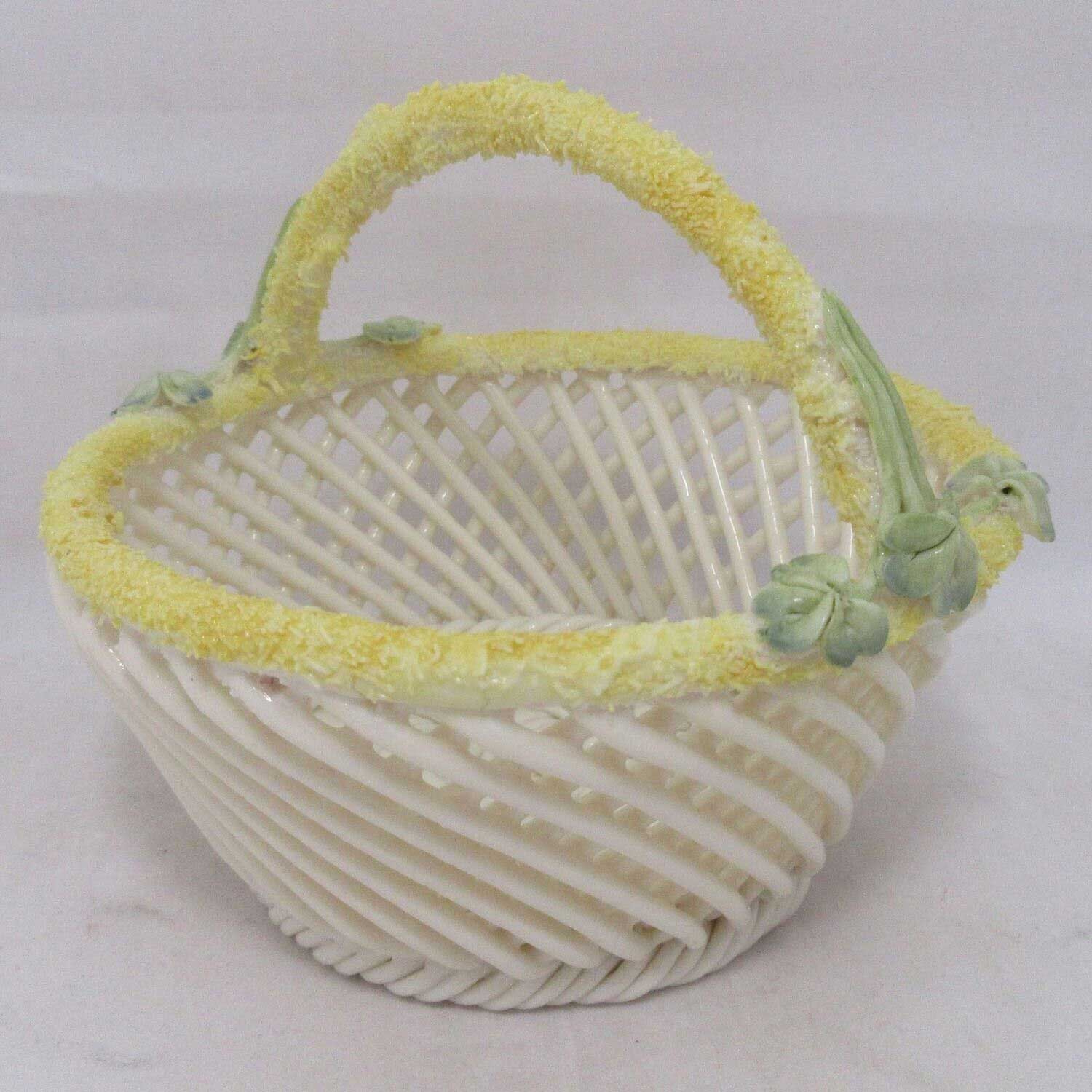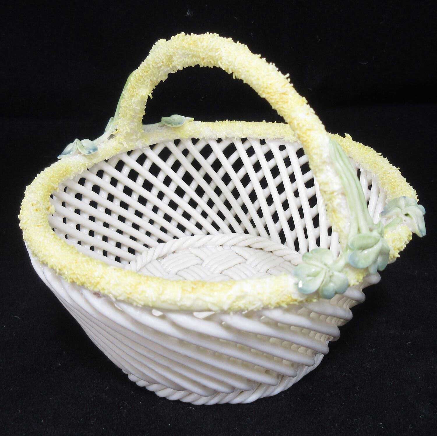 Belleek Strand Woven Easter Porcelain Basket Blue Stamp #2252