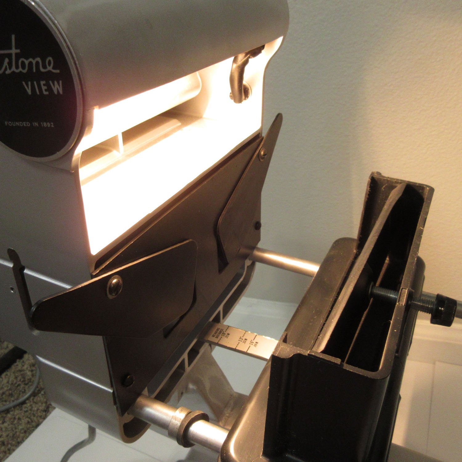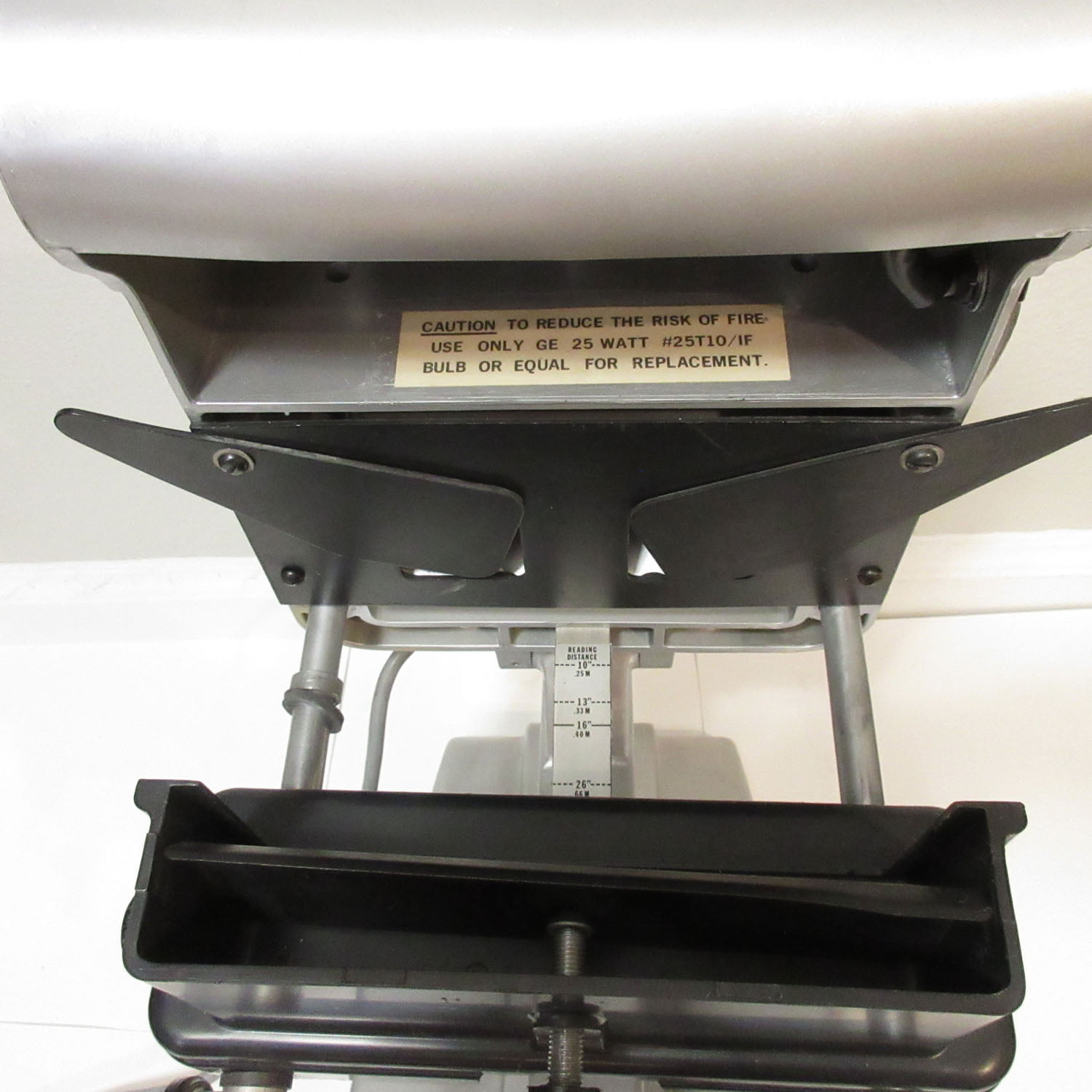Very good overall condition. Missing three screws and the forehead plastic headrest. One spot is slightly melted from the hot bulb (See detailed photos)