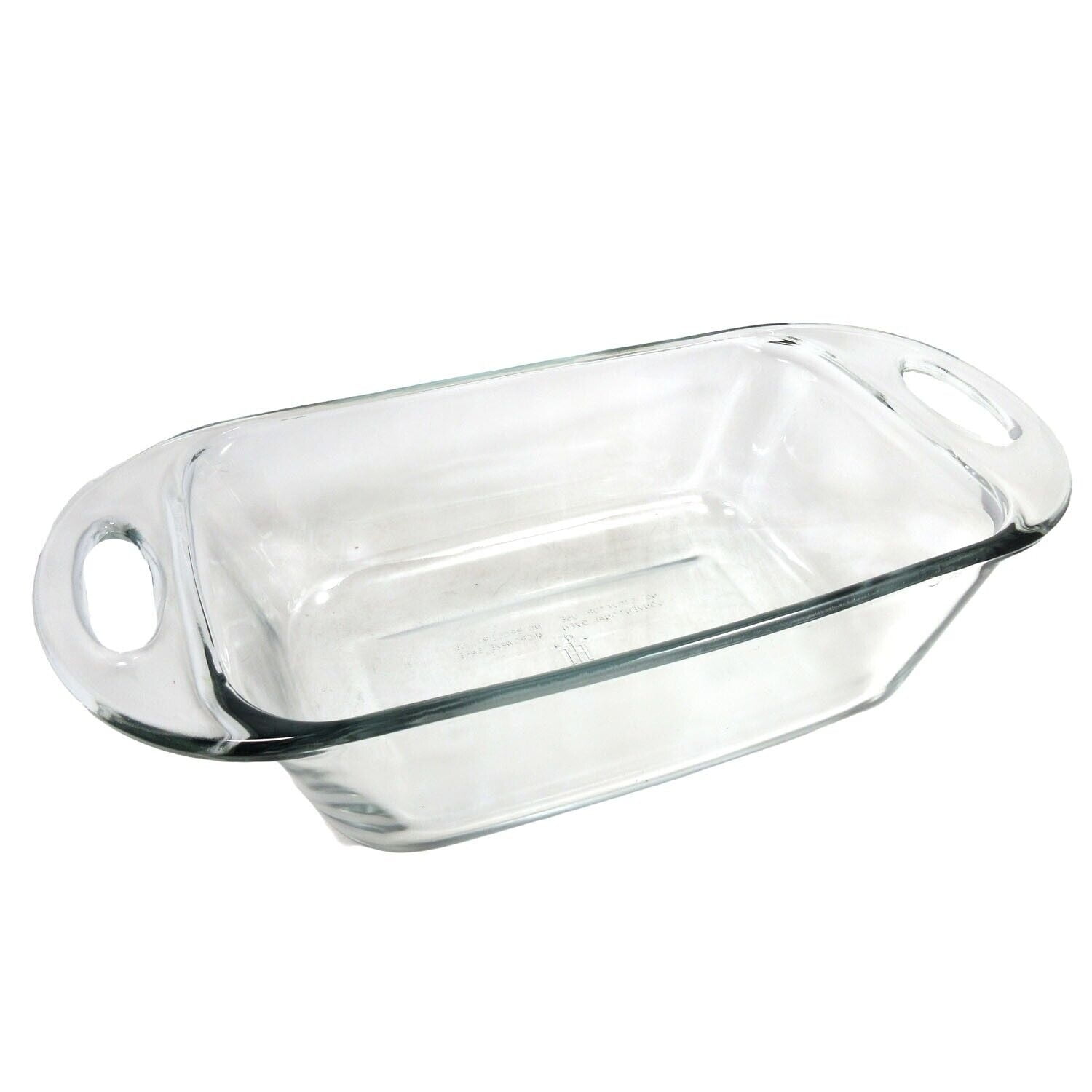 Vintage Anchor Hocking USA Clear Glass Loaf Pan w/Handles 5”x9” 1.5 qt