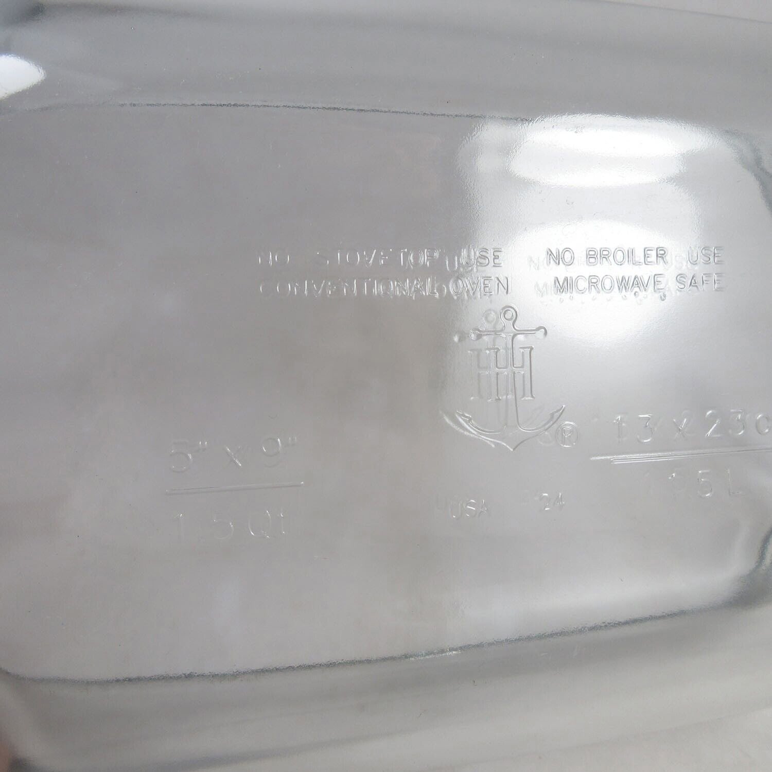 Anchor Hocking USA Clear Glass Loaf Pan w/Handles 5”x9” 1.5 qt Vintage