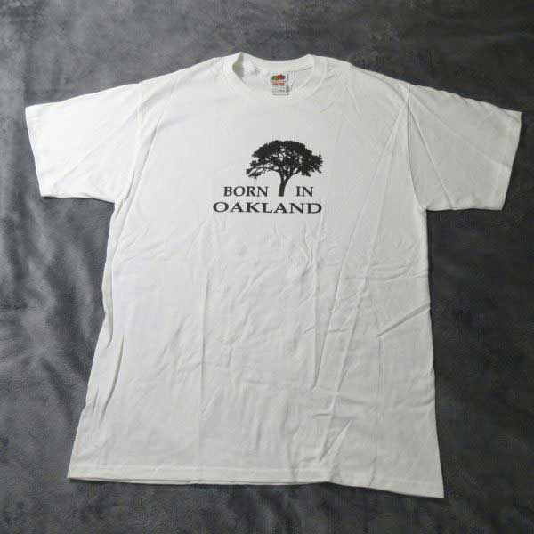 Born in Oakland Custom Print Fruit of the Loom Basic White T-Shirt Sz M, L, XL