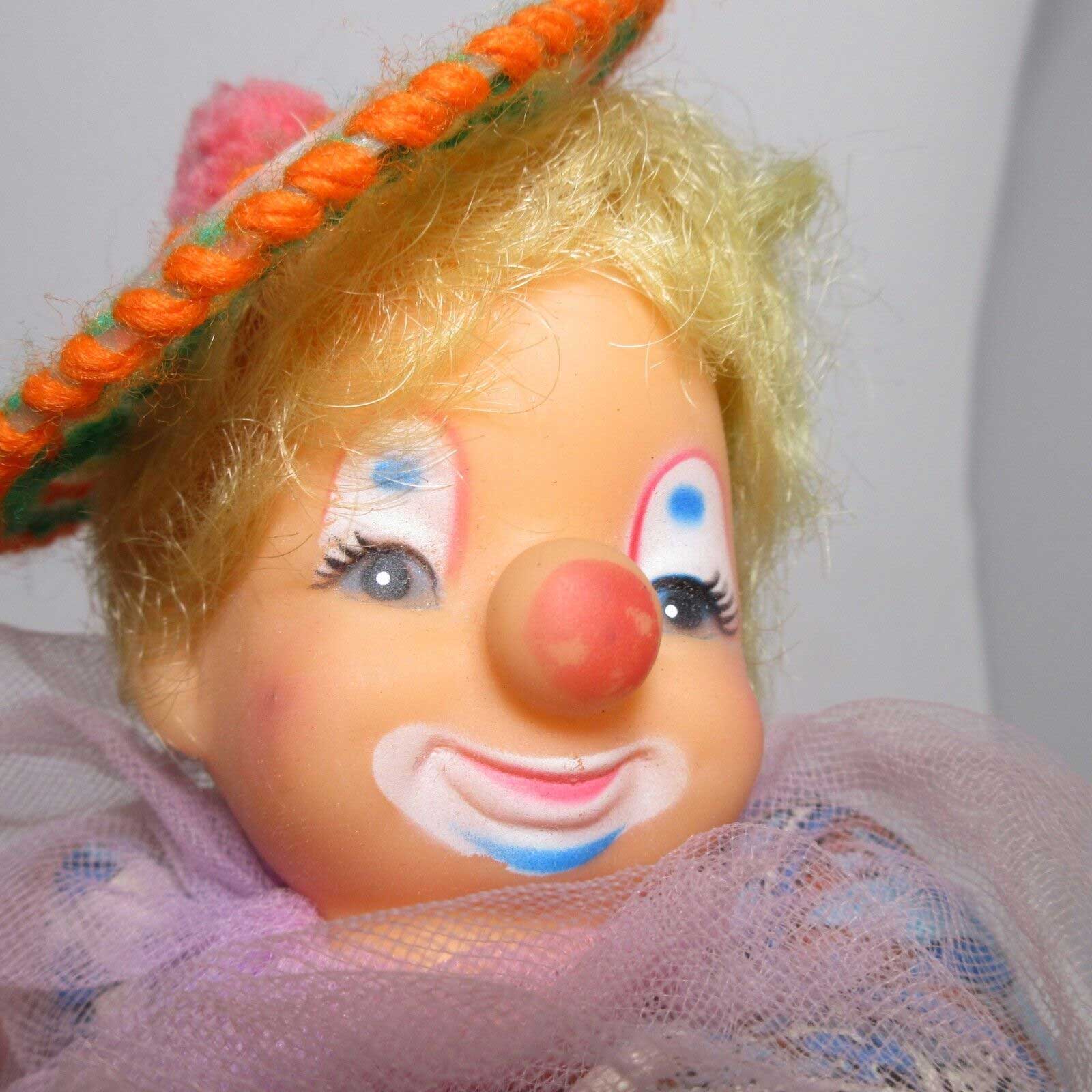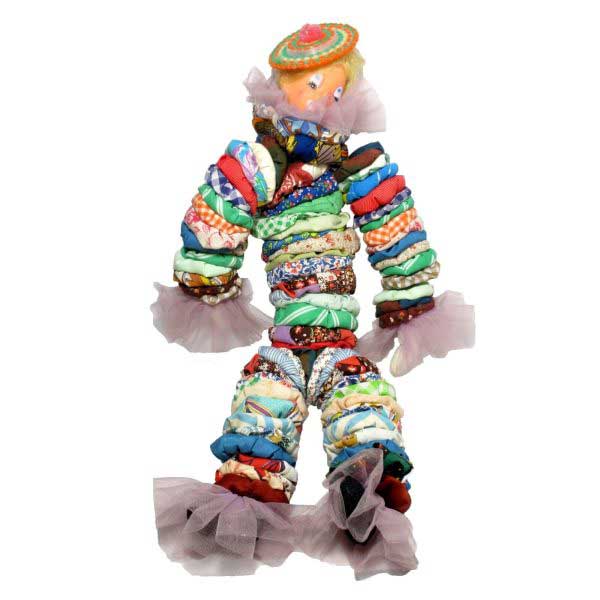 Vintage Homemade Happy Yo Yo Crazy Circus Clown Doll Blond Patchwork Scrap Quilt